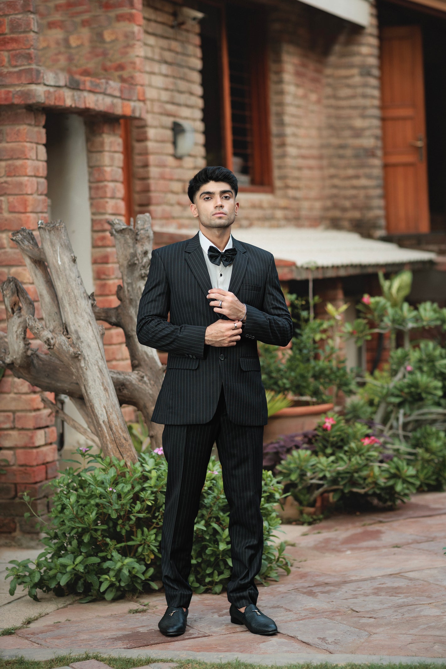 Enhance your formal look with our Men Suits Black 3 Piece. Our slim fit design gives you a modern and stylish appearance, perfect for weddings or dinner parties. Tailored to your measurements, our suits are made with high-quality materials. Make a statement with our bespoke suit for men.
