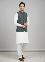 Add class to your traditional Shalwar suit with this modern and elegant men waistcoat. Made from a soft and lightweight tropical fabric it is processed using the latest techniques to get a smooth and clean texture. This men waistcoat is a luxurious complement to a suave personality. Order now to stand out from the crowd.