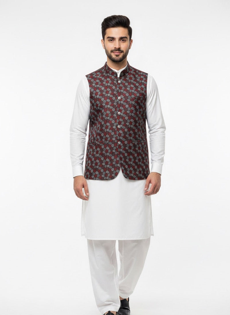 MEHROON PRINTED WAISTCOAT