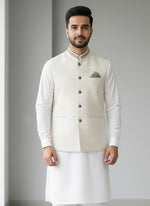 Add class to your traditional Shalwar suit with this modern and elegant men waistcoat. Made from a soft and lightweight tropical fabric it is processed using the latest techniques to get a smooth and clean texture. This men waistcoat is a luxurious complement to a suave personality. Order now to stand out from the crowd.