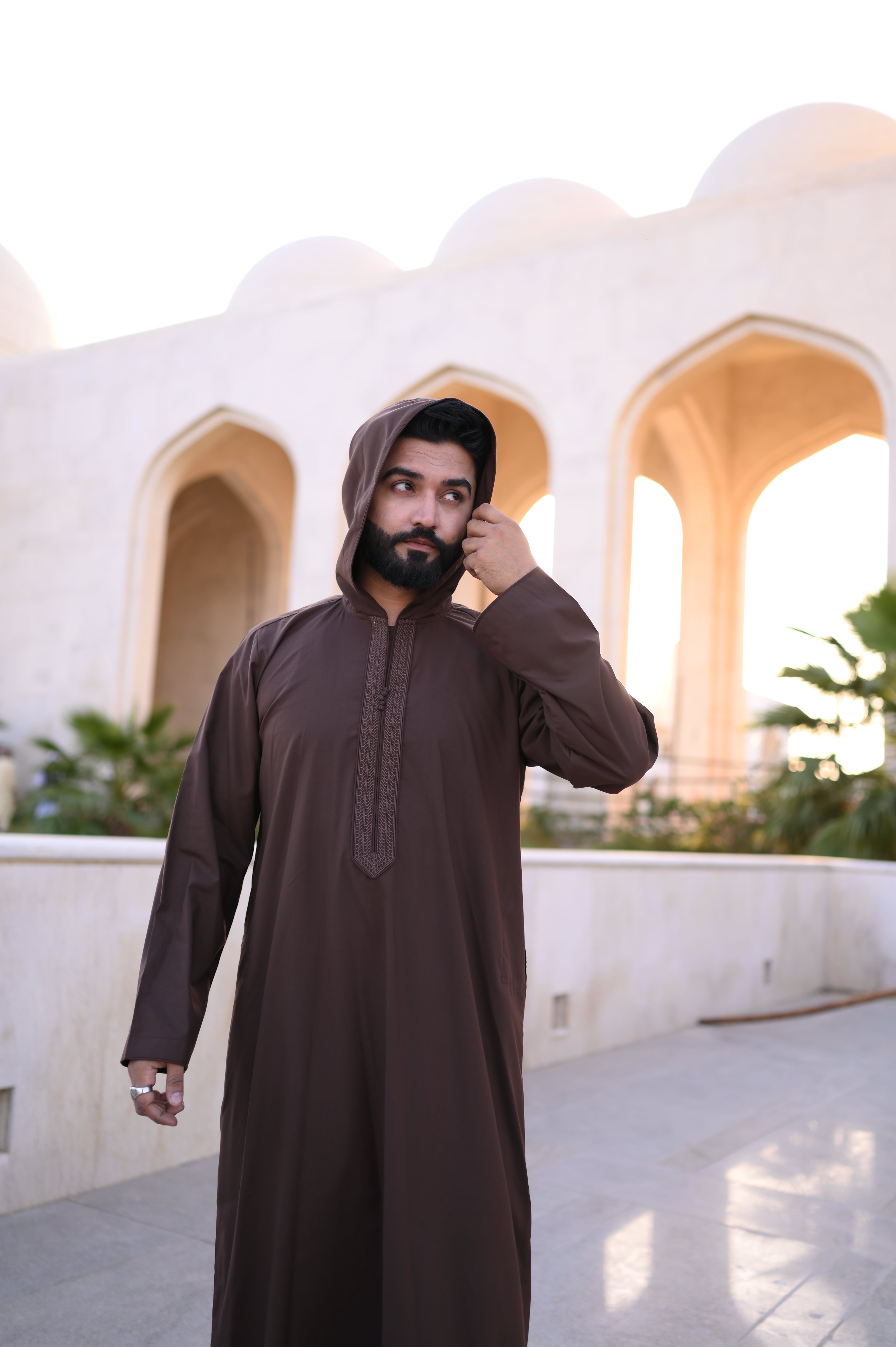 The rich brown shade gives earthy, calm, confident vibes perfect for those who keep it lowkey but impactful. Crafted from premium fabric, this brown hooded thobe for men delivers comfort, flow, and everyday versatility.