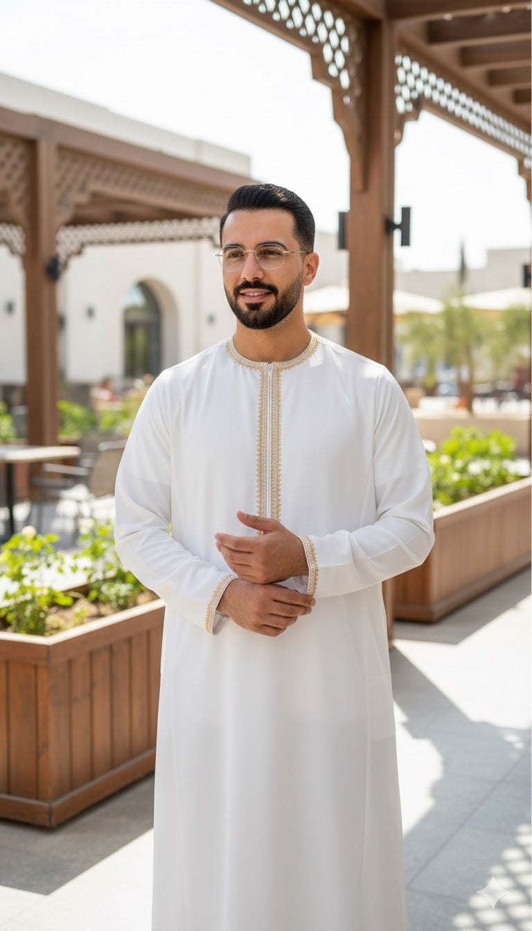 - Imported Spun Fabric- High Quality Fabric- Finest Quality Stitch- 2 Side Pockets- Quality Based on International AQL- Navy Blue Embroiderd Emirati Thobe